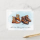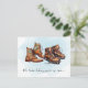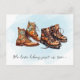 Announce your new hiking buddy with these adventurous pregnancy announcements! This design includes watercolor graphics of hiking boots and can include your custom message on the back.
