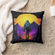 A cool retro style colourful mountain landscape design featuring a hiker in the sunset.