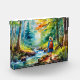 This is a watercolor image of a girl hiking next to a stream in a forest. It has beautiful colours and would look great setting on a desk or anywhere you like. Just looking at it helps me feel more at ease.