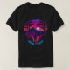 A cool retro style colourful mountain landscape design featuring a hiker in the sunset.