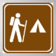 International style road and highway sign advising of recreational facilities, specifically: hiking trail with camping.