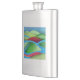 An abstract landscape with vibrant colours and textures showing hills floating on ice in shades of green, blue, cyan, red, and pink.