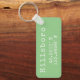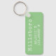 Keychain with Hillsboro Oregon longitude and latitude coordinates in vintage typewriter font on light green background.