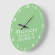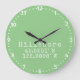 Wall clock with Hillsboro Oregon longitude and latitude coordinates in vintage typewriter font on light green background.