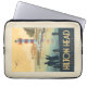 The sleeve is made of nice feeling material and seems very durable. I'm not sure how easy it'll be to clean, but the construction seems sound and the fabric is quick thick. I also like the double zipper. The printing is lovely and appears durable. The white on black contrast is nice, and the design very elegant.