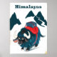Himalayas Vintage cartoon yak animal carrying luggage travel poster.