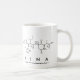 Hina spelled out in amino acids as H I N A (Histidine Isoleucine Asparagine Alanine) on a mug for the scientist in you.