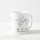 Hind spelled out in amino acids as H I N D (Histidine Isoleucine Asparagine Aspartic acid) on a mug for the scientist in you.