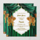 A beautiful, vibrant and luxurious emerald green opulent drape that is rouged at the top forms a border around a white inlay on which custom text templates appear. On either side of the curtains are golden Indian elephants with their trunks down looking at you. The back has the same design plus additional templates for extra information you may want your guests and family to know. If not required, delete the wording to leave them blank. This stylish, elegant and traditional design is ideal for any Hindi or Hindu ceremony. Spoil the bride to be with this ethnic asian upmarket, luxurious and bespoke square invitation