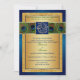 Was your love written in the stars? This dramatic blue and gold wedding invitation has a central blue and gold FAUX engraved look medallion with the Hindu god Ganesh on it, lying over top of a band of richly coloured peacock feathers on it. There is also a gold PRINTED glitter border on it, and customisable blue and green text that you can personalise to suit your occasion. The Hindu wedding quote by Rabindarath Tagore is a beautiful belief that says: "I seem to have loved you in infinite forms, infinite times, in life after life, in age after age forever". There are also text boxes on the back for you to add any additional text to. Be sure to delete them if you don't need them. ****PLEASE NOTE that none of the elements on this invitation are raised or embossed. Everything is printed flat. This invitation would be perfect for a spring, summer, fall, or winter Indian, Hindu, Sanskrit, or Muslim wedding ceremony, and would also work well for other formal events requiring class and taste. ALSO, if you re-size the invitation, or if you change fonts, or the size of the font, some of the design and/or text may get cut-off. Everything will print as you see it on your monitor. I will not see your invitation, and Zazzle will NOT correct anything (typos, alignment etc.). The text and paper is all customisable. If you need help with this invitation, please email me BEFORE you place your order. If you require any other matching items, or would like any other design elements added to it, such as a symbol etc., or if you need it in another language, please email your request to niteowlstudio@gmail.com.