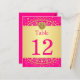 This hot pink and gold FAUX embossed look table number post card with a gold FAUX engraved look medallion with the Hindu god Ganesh on it, along with a gold scroll circle pattern with ornate swirled hearts detailing and gold stars and dots that lay over top of a fuchsia pink background with another layer of fine bright lavender purple swirls and scrolls on it that match the wedding invitations shown below. You must customise the card for EACH table number that you need, by changing the "12" to each number you need, adding it to your cart, and then repeating the process until you have the correct number of individual cards in your cart. If you have any questions, email niteowlstudio@gmail.com.