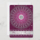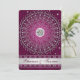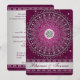 This dramatic burgundy purple and silver grey wedding invitation has a removeable central silver FAUX engraved look medallion with the Hindu god Ganesh on it, along with a large central scroll circle pattern on it with ornate swirled hearts detailing on it with silver grey stars and dots that lay over top of a deep burgundy wine background with another layer of fine bright pink swirls and scrolls on it. There is also a silver tone band across the bottom of the invitation that has the names of the bride and groom on it. ****PLEASE NOTE that none of the elements on this invitation are raised or embossed. Everything is printed flat. This invitation would be perfect for a spring, summer, fall, or winter Indian, Hindu, Sanskrit, or Muslim wedding ceremony, and would also work well for other formal events requiring class and taste. It is shown here on basic paper. If you re-size the invitation, or if you change fonts, or the size of the font, some of the design and/or text may get cut-off. Everything will print as you see it on your monitor. I will not see your invitation, and Zazzle will NOT correct anything (typos, alignment etc.). The text and paper is all customisable. If you need help with this invitation, please email me BEFORE you place your order. If you require any other matching items, or would like any other design elements added to it, such as a symbol etc., or if you need it in another language, please email your request to niteowlstudio@gmail.com.