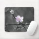 This mouse pad features a pink cherry blossom against a natural background in black and white.