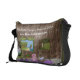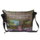 Messenger bag featuring KLeighE, who is working on art for another book on the computer, and Dharma, who is reading the new 'A Journey Through Alphabet Land' children's picture book to Pinkie bear and Bray bear in the treehouse's library.