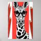 Hip Giraffe Pencil Drawing, Red Pencil Background Poster