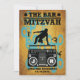 It’s on. Press play and bring your moves to the Bema. This invitation is perfect for hip-hop, rap, dance or music-themed bar mitzvahs. An old school boom box is the focal point with B Boys and B Girls surrounding it – in various dance poses. A retro blue pattern winds its way in the background, anchored by a distressed golden hue. And two Stars of David bookend the main title. All of the printed information can be customised with your son’s name and the event date…just fill in the fields! And it coordinates perfectly with the Hip Hop Bar Mitzvah Reply Card.