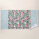 Enjoy total comfort at the beach or sitting poolside, and cool and dry off with this fun, colourful and comfy beach towel. Stand out in the sand with this beautiful contemporary pastel pink flamingos on green palm leafs on light aqua turquoise and pale blue watercolor paint brush strokes pattern. With room to customise or personalise with name, monogram or initials of your choice. Ornate, funky, modern and whimsical design for the artistic fashionista or artsy fashion diva, hip trendsetter, vintage retro watercolor painting art style or abstract motif lover.