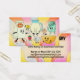Cute, groovy hippie style baking ingredients characters featuring flour, milk pitcher, sugar, fruit, egg, mixing bowl and measuring cup on this bakery business card for your home bakery business.