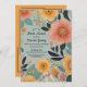 Our bridal shower invitation design showcases a charming hippie boho aesthetic with a watercolor floral theme. The colour scheme features harmonious shades of golden yellow, peachy pink, and light teal green, creating a warm and inviting feel. The floral design dominates the invitation, with beautifully detailed flowers and foliage spread across most of the space, giving it a unique and artistic flair. Adding to its elegance, the typography is placed off-centred to the left, offering a touch of sophistication while maintaining a playful and cute vibe.