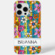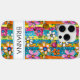 Make a retro statement with this groovy 70s inspired hippie flower power iphone 15 pro max phone case! It's modern and trendy with bright multi-coloured watercolor flowers. Make it uniquely yours with your name in a mod CAP font in black. It will look fabulous on your phone!