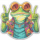 Spread peace and positive vibes with our hippie frog peace sign sticker. This colourful sticker features a whimsical frog holding up two fingers on each hand in a peace sign gesture. With its vibrant design and peace-loving spirit, this sticker is perfect for adding a touch of groovy charm to your belongings.