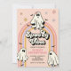 Spooky Vibes! Retro groovy Ghost Hippie Halloween birthday party invitation. Spooktacular second birthday bash invite with retro ghost, flowers and bats.