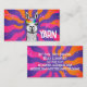 Cute hippie llama wearing a peace-sign headband, with groovy background on this business card or packaging tag for knitters, knitting and crochet crafts, or handspun or homespun yarn, personalised with your choice of fonts, text, and text colours, perfect for craft shows or product sales.
