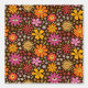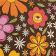 This is cute hippie psychedelic groovy 70s flowers pattern with surreal eyes in orange, red, pink with little green leaves on dark background.