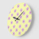 Hippie Retro Purple Yellow Flower Y2K Pattern Large Clock