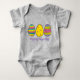 One-piece infant suit features a row of colourful painted Easter eggs, with HIPPITY-HOP-HOP written underneath in a fun font. The perfect outfit for awaiting the Easter bunny's arrival!