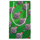 Hippo in Santa Hat Pattern On Green Small Gift Bag