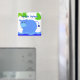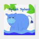 A cool blue hippopotamus splashing in the cool blue water. Bright green leaves above him. A fun hippo magnet.