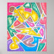 Hippo Star-Whimsical Poster with Hand Painted Geometric Abstract Art in Bold Vivid Colours