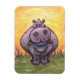 Animal Parade Cute Hippopotamus Photo Magnet created by Imagine That! Design are for the fun side of you featuring our original art of a cute hippo character standing in the grass of the savanna with a textured yellow, orange sky and a playful wavy purple border painted by our talented children’s illustrator, Traci Van Wagoner. This cute water horse makes a great gift for anyone who loves hippos, African animals, safari animals, Africa hippos, water horses and fun animal art. Join the Animal Parade and get one for yourself today!