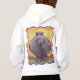 Animal Parade Hippo Kids' Hanes ComfortBlend® Hoodie are for the fun side of you featuring our original art of a cute hippopotamus character painted by our talented children's artist, Traci Van Wagoner, standing in the green grass of the savanna with a textured yellow, orange sky and fun wavy purple border. See the hippo coming and going with this fun artwork of the fun pachyderm’s head on the front and the Africa hippo's tail on the back against a dry-brush textured background. Join the Animal Parade and show your best side today with one of our funny animal heads and tails tshirts. You’re bound to make everyone around you smile.