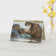 Funny animals birthday card for an older man, or woman. Hippos on the front with one appearing to “yell” at the others. Text is “I told you the boat would’t hold us”. Inside, sample text is, “Don’t let your birthday get you down - Happy 50th (any year)”. Also add a signature. Cards come in three sizes. Masculine brown colours are used.