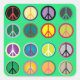 A cute and colourful peace symbols pattern design against a retro peppermint green customisable background. Hippy 1960s free love happy hippy groovy vibes. Suitable for a flower child. Bright and colourful.