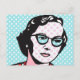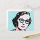 This Hipster Chic Retro Pop Art postcard features a woman wearing red and white polka dots. The woman's coifed hair, pearl necklace and black rimmed eyeglasses give her an authoritative air. The woman is on an aqua and white polka dot background. It's hipster chic, Baby!