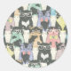 Hipster Cute Cats Pattern Classic Round Sticker