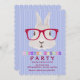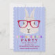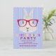 A trendy Easter Party invitation featuring a bunny wearing red eye glasses and a pastel-coloured "Hipster Easter" message. (FP)