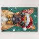 Hipster French Bulldog Santa Glasses Modern Jigsaw Puzzle