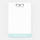 The perfect note pad for the chic geek featuring black style glasses and soft mint blue colour details.