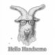 Hipster Goat farm animal with glasses and Hello Handsome quote