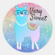 Hipster Llama Rainbow Glitter Ombre Classic Round Sticker
