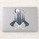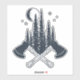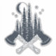 Crossed axes, forest trees and a moon are featured in this stylish hipster lumberjack scene illustration