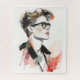 A digital illustration of a young Hipster man with a multi-coloured line drawing.