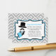 Invite your guests to bring a book for the little man's library! This book request insert has a outline of a classic gentleman with a top hat, a moustache, tuxedo and bow tie. Background of grey and white chevron background. Personalise with your book request information.