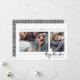 This New Year's holiday card features a collage of two of your favourite photos in the centre. The phrase "happy new year" in a modern handwritten script sits above your name in black. The year is centred at the top in between two horizontal lines. The back features a black and white geometric pattern.