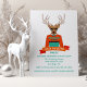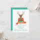 Clean and modern Hipster ugly sweater Holiday Christmas party invitations. Features a hipster reindeer with glasses, bowtie and fun orange, brown and aqua colours.