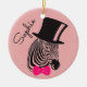 Hipster Zebra with top hat and Bow Tie name Ceramic Ornament